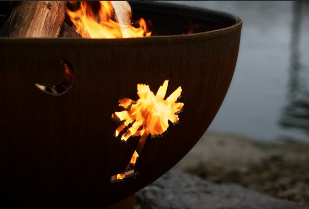 Do not tarp your fire pit, the tarp will cause the patina to blacken and stop the oxidation process. In many cases the color of the tarp will transfer to the new steel. During the maturing process keep wet leaves and debris off the piece until the steel matures. Allow the piece to mature with each fire. Sit back, relax and enjoy your new Fire Pit Art®.
