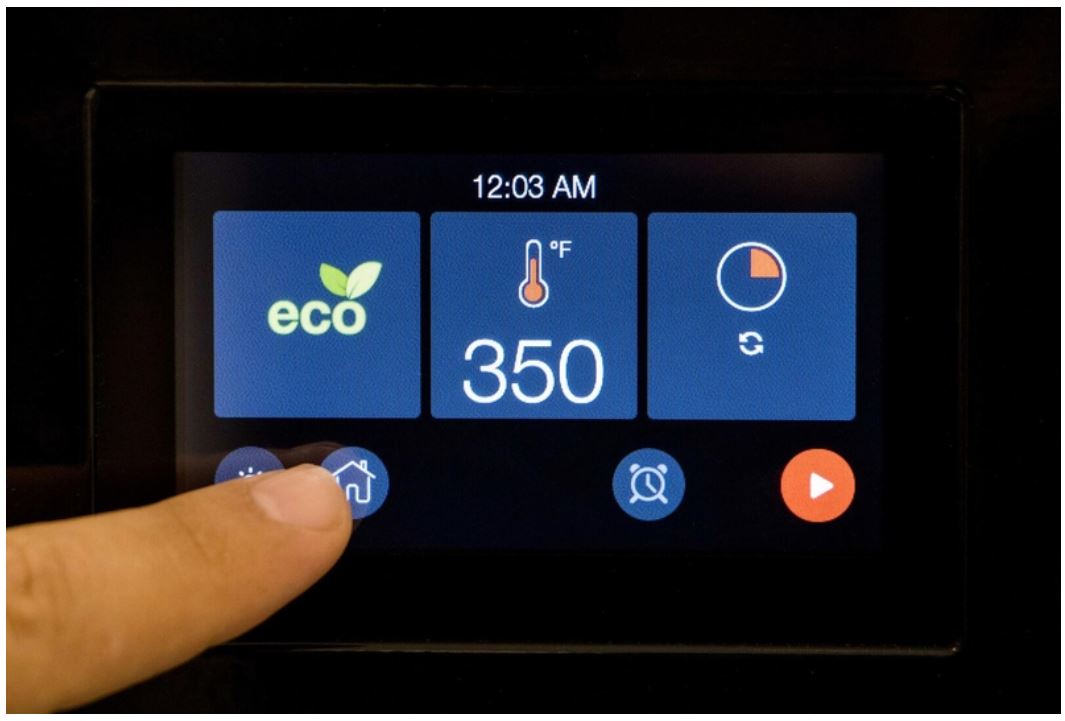 Simple 4.3" TFT full touch screen, with intuitive and straightforward graphics provides easy commands for selecting thermostat, timer and automatic programmer for cooking start and finish timers.