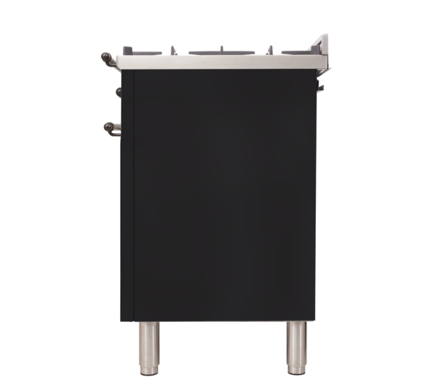 Nostalgie 36 Inch Dual Fuel Liquid Propane Freestanding Range in Glossy Black with Bronze Trim