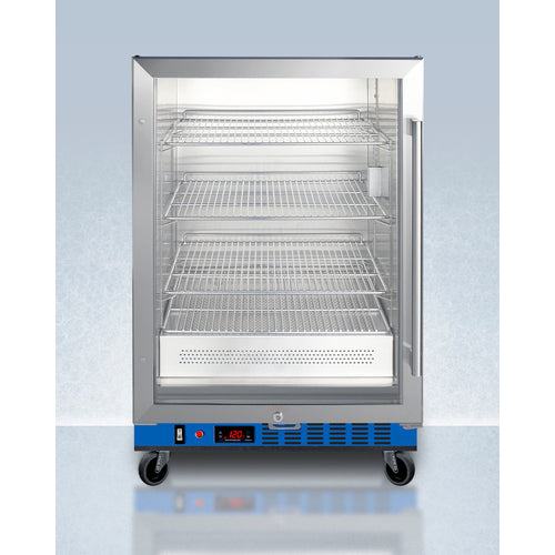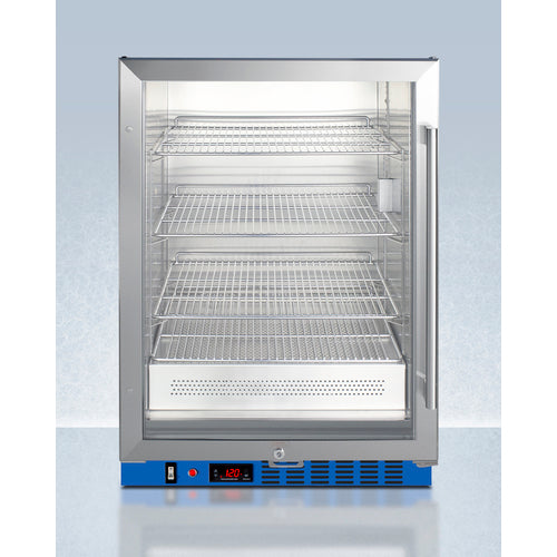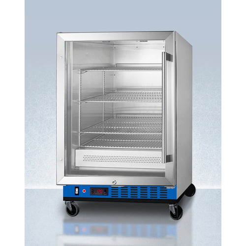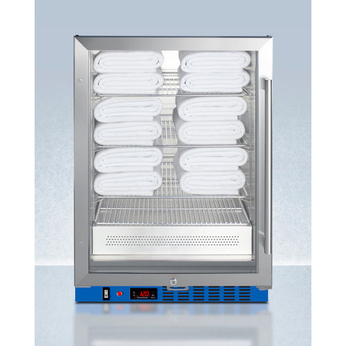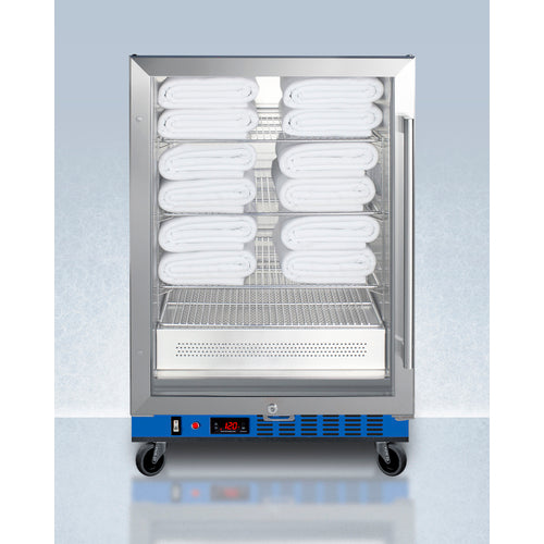 PURETHERM by ACCUCOLD brings value and convenience to warming cabinets, with user-friendly models designed and assembled in the USA. The PTHC65GUCLHD is an undercounter single-chamber blanket warmer ideal for hospital settings keeping blankets at the proper temperature. The double-pane tempered glass door ensures your staff can quickly check inventory with a display that goes down to the floor. No internal fan helps to reduce lint buildup for safer, more efficient operation. Additionally, without fans or moving parts, there is no noise produced for silent operation. The interior walls are constructed from stainless steel to ensure easy cleanup and long-lasting durability. Sized with a 24" footprint, this unit takes up little space but can accommodate up to 4.57 cu.ft of storage. Inside, the PTHC65GUCLHD is designed to operate between 90º and 140ºF with a foamed-in-place cabinet to ensure efficient insulation. This unit is featured with a digital thermostat that includes a large LED temperature readout. The cantilevered shelving system includes three chrome shelves that can be adjusted to virtually any position to best suit your storage needs. The PTHC65GUCLHD includes a factory installed lock on the stainless steel trimmed door. A hospital grade cord with a 'green dot' plug ensures added safety in high traffic areas. This model comes with a stainless steel exterior cabinet finish. This unit ships with a left-hand door swing (for a right-hand version, see model PTHC65GUC). With its conveniently slim dimensions and user-friendly features, the PTHC65GUCLHD is a great way to keep blankets properly cared for in hospitals, medical and physical therapy offices, wellness centers, spas, and other facilities. Additional sizes are available. Visit www.accucold.com/puretherm to explore our complete selection.
