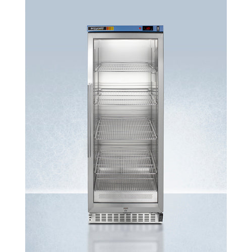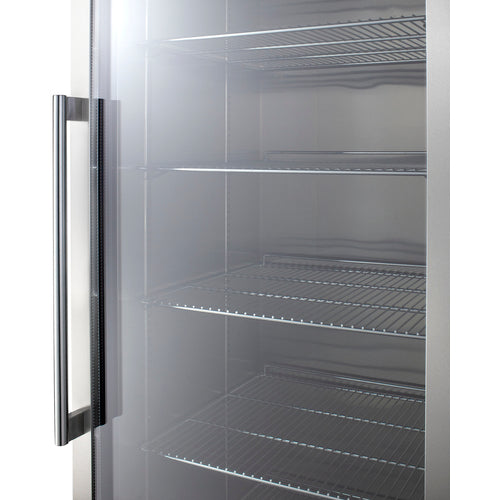 Heat-safe glass door offers a full view of stored contents, with a stainless steel door trim to highlight the interior