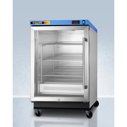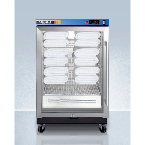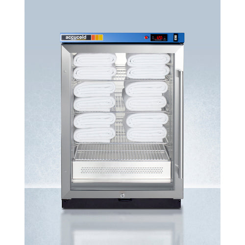 PURETHERM by ACCUCOLD brings value and convenience to warming cabinets, with user-friendly models designed and assembled in the USA. The PTHC65GLHD is a single chamber blanket warmer ideal for hospital settings keeping blankets at the proper temperature. The double pane tempered glass door ensures your staff can quickly check inventory with a display that goes down to the floor. This unit has a left-hand door swing, while a pro style handle offers added convenience. No internal fan helps to reduce lint buildup for safer, more efficient operation. Additionally, without fans or moving parts, there is no noise produced for silent operation. The interior walls are constructed from stainless steel to ensure easy cleanup and long-lasting durability. Sized with a 24" footprint, this unit takes up little space but can accommodate up to 4.57 cu.ft of storage. Inside, the PTHC65GLHD is designed to operate between 90º and 140ºF with a foamed-in-place cabinet to ensure efficient insulation. This unit is featured with a digital thermostat that includes a large LED temperature readout. The cantilevered shelving system includes three chrome shelves than be adjusted to virtually any position to best suit your storage needs. The PTHC65GLHD includes a factory installed lock on the stainless steel trimmed door. A hospital grade cord with a 'green dot' plug ensures added safety in high traffic areas. We offer an optional dolly (DollyPHC) specially designed for this unit to allow for easier mobility and cleanup. This model comes with a a stainless steel cabinet finish. With its conveniently slim dimensions and user-friendly features, the PTHC65GLHD is a great way to keep blankets properly cared for in hospitals, medical and physical therapy offices, wellness centers, spas, and other facilities. Additional sizes are available. Visit www.accucold.com/puretherm to explore our complete selection.