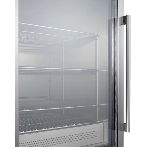 Heat-safe glass door offers a full view of stored contents, with a stainless steel door trim to highlight the interior