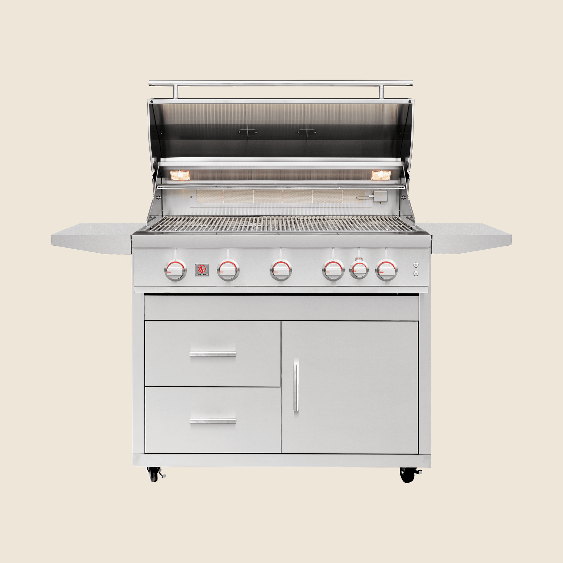 The Summerset Sizzler / Sizzler Pro 40″ Deluxe Grill Cart offers a premium, built-in alternative. Constructed from high-quality #304 Stainless Steel, this durable Cart delivers exceptional stability, ample storage, and convenient functionality for both casual and professional chefs. *Sizzler Shown in Cart Image