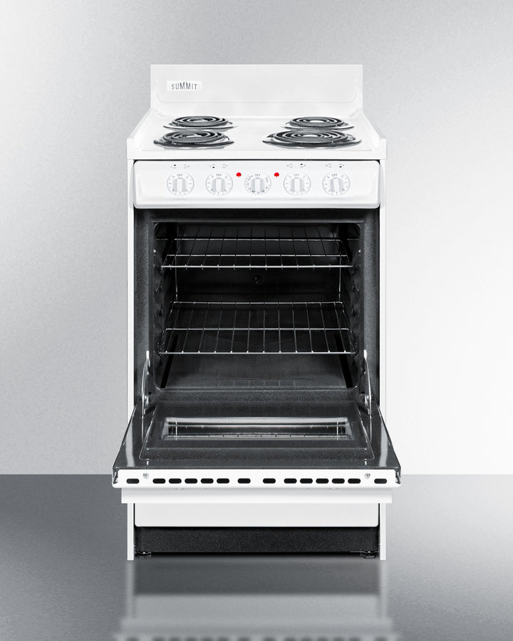 • SUMMIT offers a wide selection of household ranges with high quality construction at superior value. At just 20" wide, the WEM110W brings quality cooking to apartments and other small kitchens. All controls are front-located to meet ADA guidelines for accessible use. The oven includes a window on the door and an interior light to make it easy to monitor your cooking. This unit includes a lower storage compartment ideal for keeping pots and pans out of the way. An anti-tip bracket is included for added safety. The interior includes two oven racks. Made in the U.S.A., the WEM110W is constructed from porcelain and steel for maximum durability. This unit comes in a classic white finish.