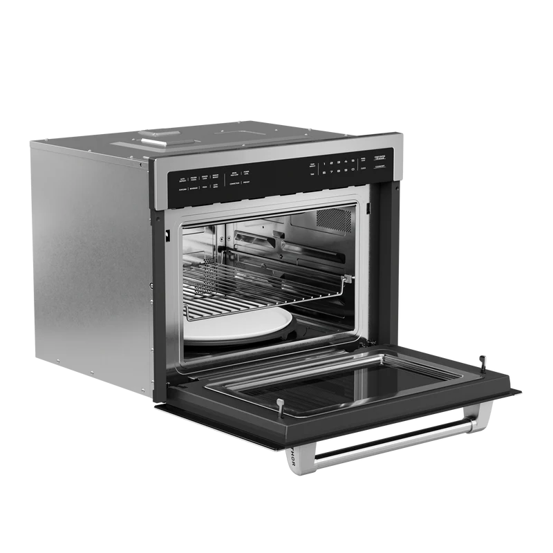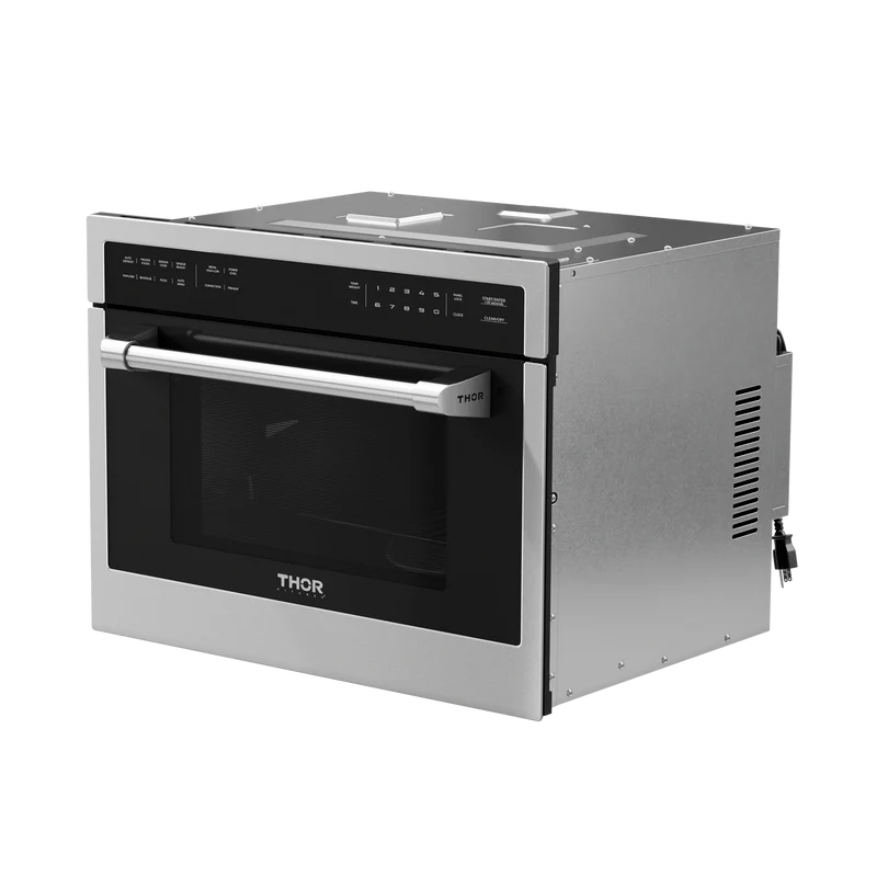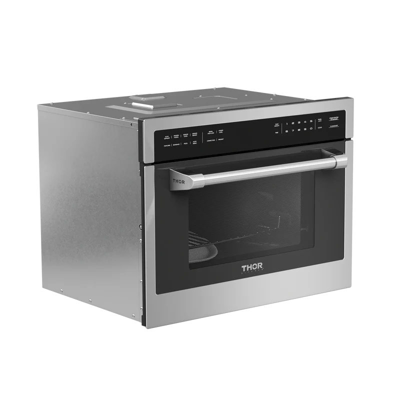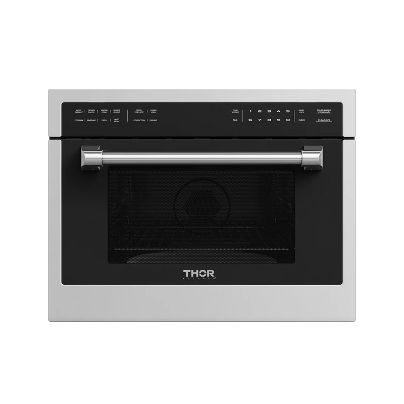 THOR Kitchen offers the power and performance of a premium professional appliance at a practical price. Ignite your culinary voyage with our cutting-edge 24-inch Built-In Professional Microwave Speed Oven. Featuring several menu options and 10 power levels, creating culinary masterpieces has never been easier. The sleek stainless steel interior adds a touch of sophistication to your kitchen. Redefine your cooking routine with these advanced features that cater to your every need.