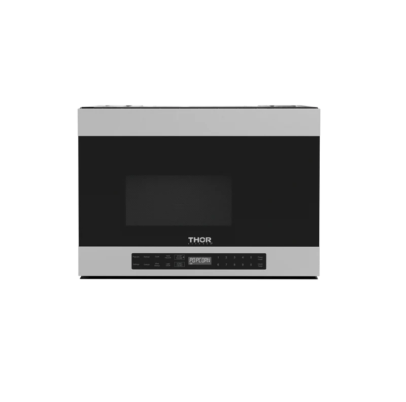 Introducing the THOR Kitchen 24 Inch Convertible Over-the-Range Microwave with Ventilation—a sleek and space-saving appliance that adds style and functionality to any kitchen. With its versatile cooking and reheating options, it maximizes kitchen space while providing convenience. This efficient product not only eliminates odors, smoke, and steam quietly but also acts as a standard hood. Enjoy the best of both worlds as you effortlessly reheat last night's takeout.