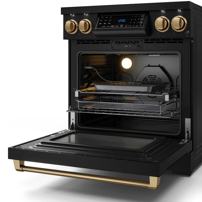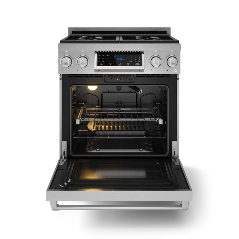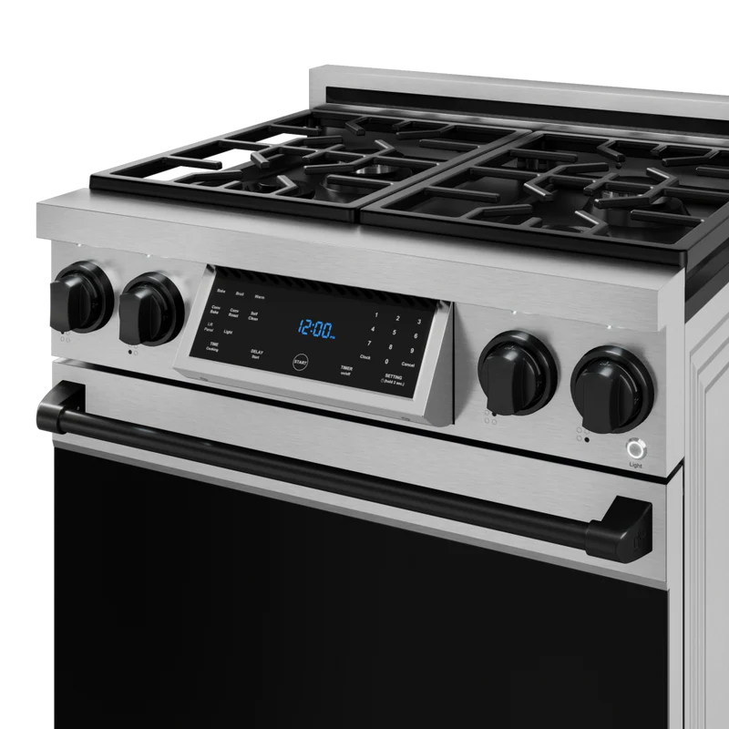 Designed for chefs who demand precision and power. With high-output burners, even heat distribution, and intuitive controls, this 30 Inch Professional Electric/Liquid Propane/Natural Gas Range in Stainless Steel/Black elevates your cooking experience. Built for durability and performance, it brings restaurant-grade quality to your home kitchen, making every meal exceptional.