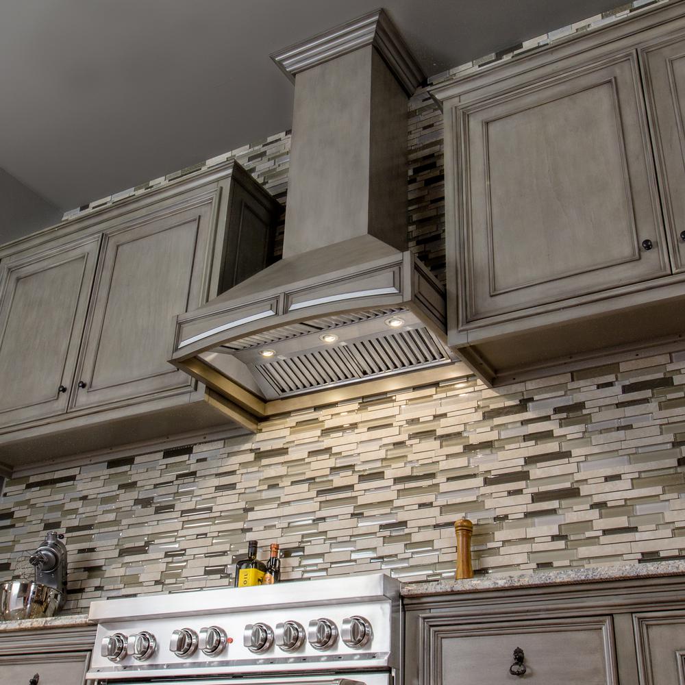 ZLINE 30 in. 400 CFM Designer Series Wooden Wall Mount Range Hood (321GG-30) has a modern design and built-to-last quality that would make it a great addition to any home or kitchen remodel. This hoods high-performance 4-speed motor will provide all the power you need to quietly and efficiently ventilate your kitchen while cooking. Modern features, including built-in lighting and dishwasher-safe stainless steel baffle filters for easy clean-up, will make using this hood a simple, enjoyable experience for years to come. ZLINE Hoods are ETL Listed and have one of the easiest installations in the industry. Includes a 24 in. chimney with elegant crown molding for ceilings up to 9.5 ft. (must be custom cut to appropriate height) and a 61 in. Chimney Extension (not included) is available for ceilings up to 12.5 ft. ZLINE stands by all products with its Manufacturer Parts Warranty.