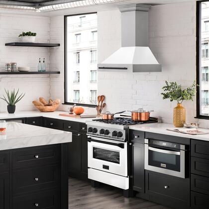 This 30" Autograph Edition Wall Mount Range Hood from ZLINE comes with a 4 speed blower with up to 400 CFM of ventilation. The hood features Push Button Controls, Delay Off, LED Lighting and Baffle Filters. The Autograph Edition hood comes with either a champagne bronze, gold, or matte black handle.