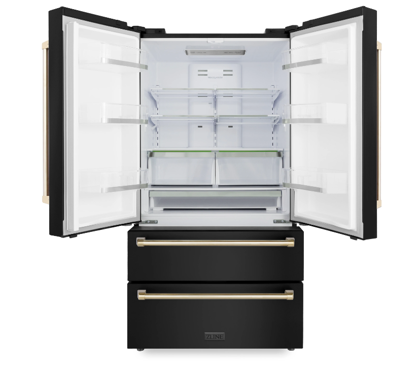 Experience ZLINE Attainable Luxury® with industry-leading kitchen and bath products that provide an elevated luxury experience, the Autograph Edition is inspired by the elegance of our home in Lake Tahoe. The Autograph Edition French Door Refrigerator in Fingerprint Resistant Black Stainless Steel is a counter-depth refrigerator that perfectly integrates into your kitchen with a built-in look that stands flush with your cabinets. Enjoy premium features such as 45dB while also saving on energy with high-efficiency cooling and an energy-saving mode. This fridge offers space for all of your favorite items with extra-large door storage bins, two freezer drawers, and adjustable shelving. ZLINE stands by the longevity and durability of its refrigerators while ensuring further protection and peace of mind with a worry-free warranty. Choose from a variety of finishes from ZLINE's Autograph Edition, including Champagne Bronze, Matte Black, and Gold. The beauty of the Autograph Edition is infinite, just like the beauty found in Lake Tahoe and the Sierra Nevada Landscapes. From our home to yours, enjoy a luxurious experience with every Autograph Edition Refrigerator.