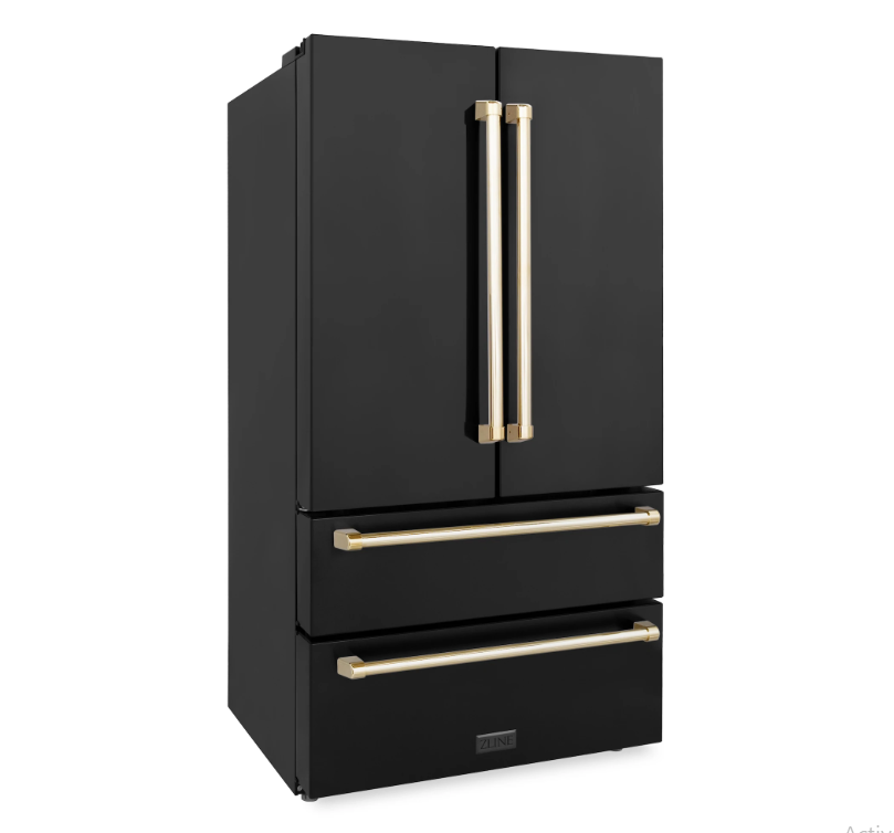 ZLINE 36" Autograph Edition 22.5 cu. ft Freestanding French Door Refrigerator with Ice Maker in Fingerprint Resistant Black Stainless Steel with Accents